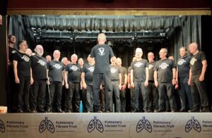 You would have been amazed at what followed. We had an undemocratic but effective conflab between our “Gig Meister” (who has been around the concert block a bit), our chap who was busy preparing the bar (‘coz he’d at least waggled his hands in a couple of warm-ups over the years!) and me, as the (by now defecating) “impresario” for the night. We couldn’t let the Pulmonary Fibrosis Trust down, could we? What about our adoring, if underrepresented, audience? Who would speak to them? Anyway, we made the decision to have an extended sound check, delay kick-off by fifteen minutes (which helped the wading crowds battle their way in, actually) and our little “Junta” put the notion of attempting what would doubtless be a “unique experience” to the rest of the chorale. Everyone’s reaction was the same: “We’re doomed…… We’ll never do it …… It’s impossible…… We can’t ……. but let’s give it a go”.
